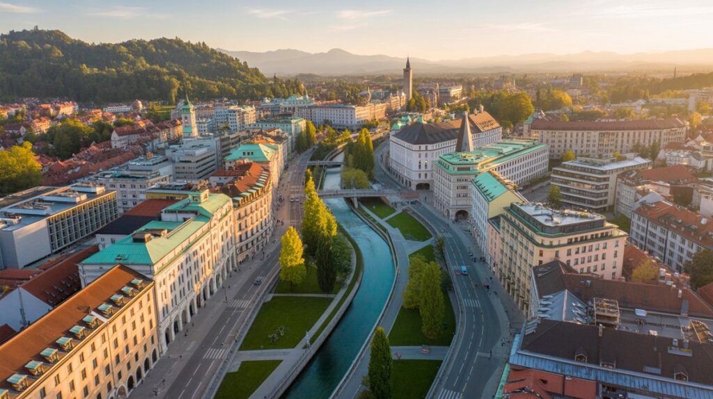 La Slovénie se distingue par des politiques ambitieuses : zones piétonnes, mobilité douce, et énergie renouvelable.